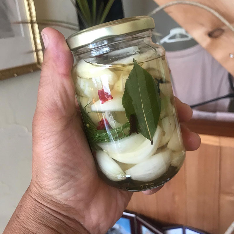 今週末、超久しぶりに友だちと乾杯出来そうなので一品仕込んでおく。近所の方にいただいた小さな新玉ねぎでピクルス。