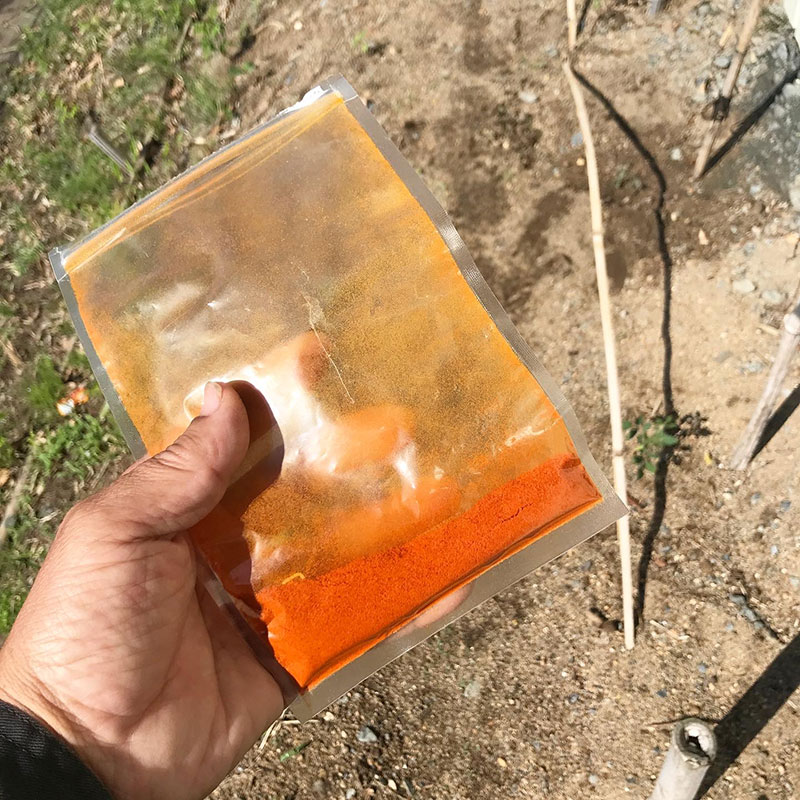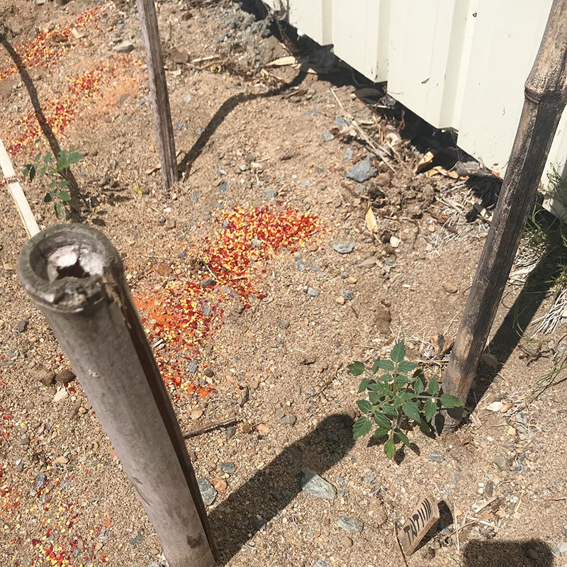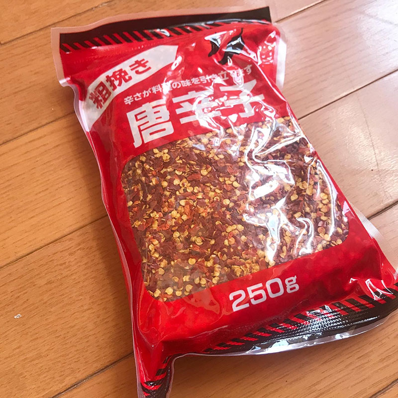 毎日、ひとつひとつのタイヤにおしっこをかけて畑の野菜を掘り返したり埋めたりしてダメにしていく憎き猫たちの対策に業務用スーパーで粗挽きの唐辛子を買ってきた。