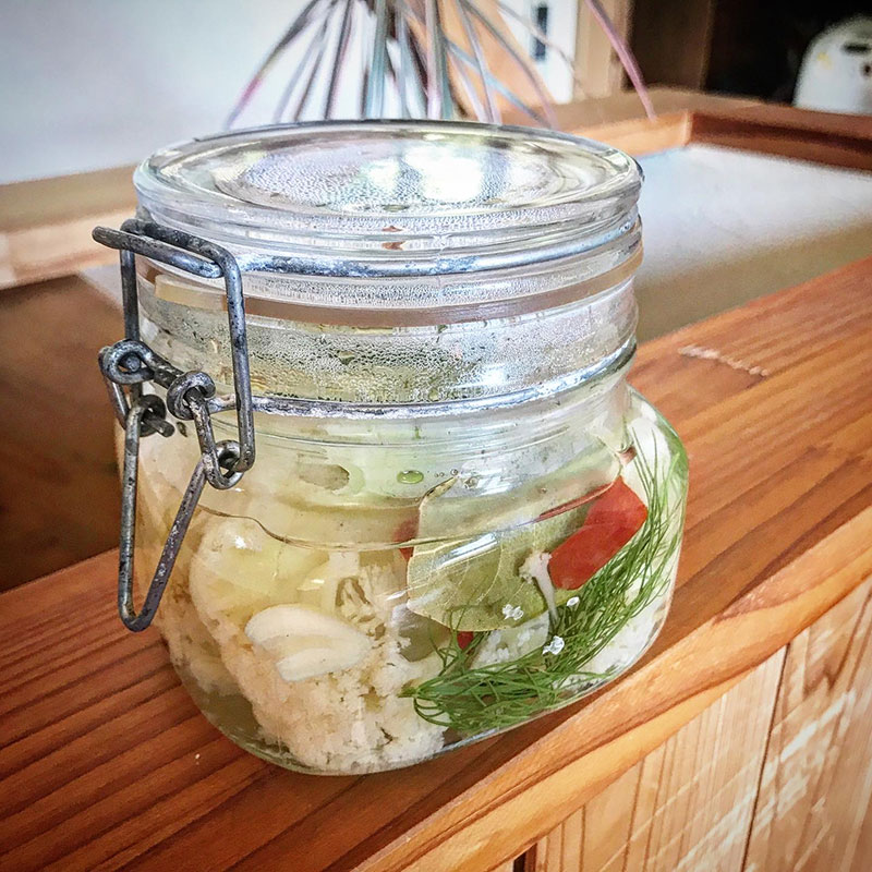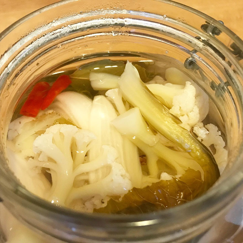 てと市で買ってきた三田農園の採りたてカリフラワーをピクルスに。