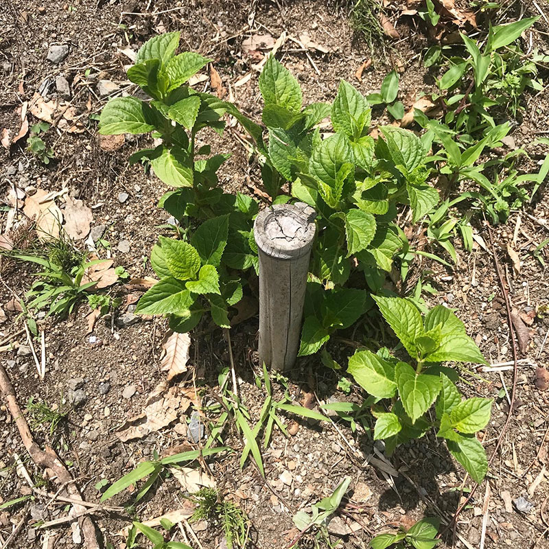 家の土手に山から移植した紫陽花。ほとんど失敗したけど根付いてくれた一株。今年は花が見られるか。