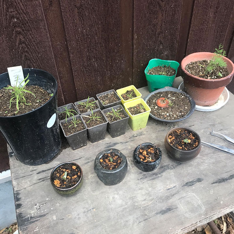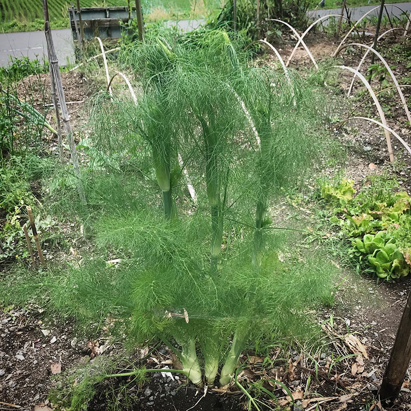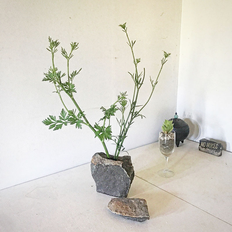 玄関の伊達冠石の花器に挿したイタリアンパセリ。畑で冬越ししたイタリアンパセリが次々に花を咲かせようとしてるので枝ごと落としてる。新しい葉を出しておくれ。今年植えたのが大きくなって葉を食べられるようになるまでまだ少し時間がかかるから。