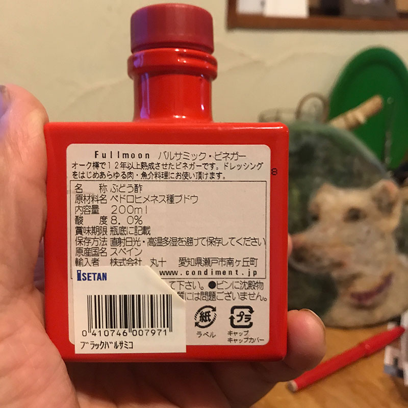 いただいた「full moon」というヴァルサミコ・ビネガーの栓を開けた。