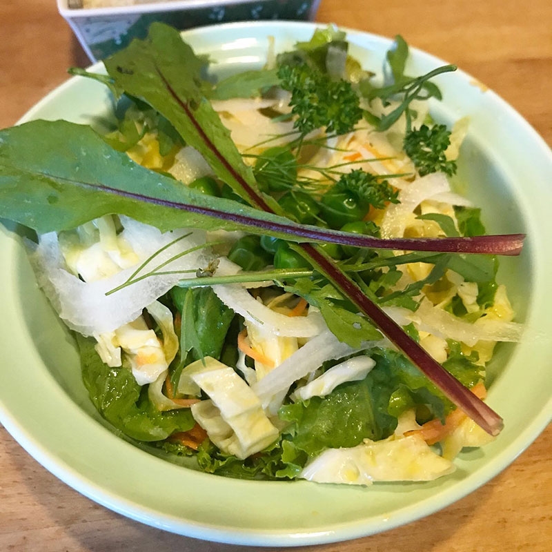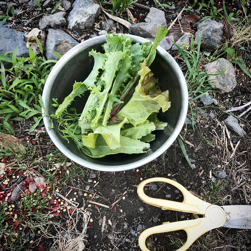 庭の畑の7種類のサラダ用のリーフが食べられるようになったので