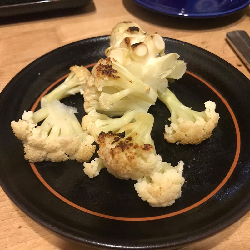 天然醸造の丸大豆醤油とフランス ゲランドの塩と三田農園のカリフラワー買って帰る。カリフラワーの半分はまたピクルスにして半分は丸ごとグリルしてみよう!