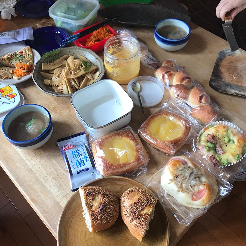 カミさんの音楽教室の看板を、ポップや看板を上手に描く友だちに仕事で依頼。設置場所の確認と打ち合わせを兼ねて我が家でランチ。地元の美味しいパン屋さんのパン買ってきて、久しぶりの友だちも一緒に4人で。コロナでずっと自粛してたから家で友だちとランチなんていつぶりだろう。