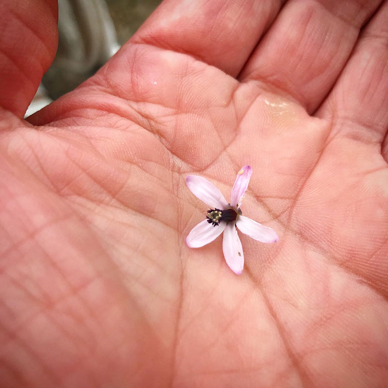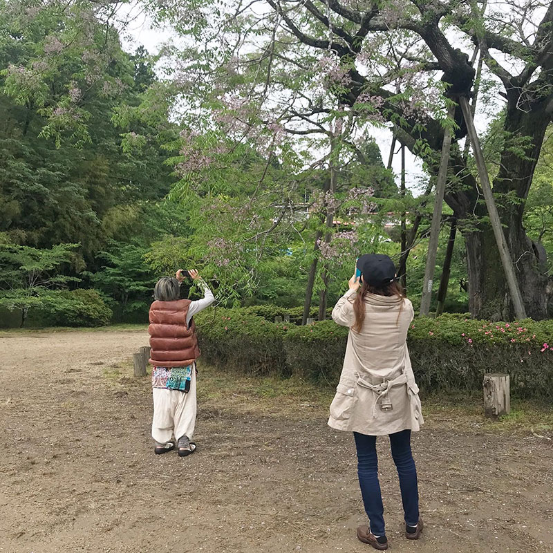 家で友だちと超久しぶりのランチの後、ちょうど仕事場近くの栴檀の巨木の花が咲き始めてるのでみんなで見に行く。