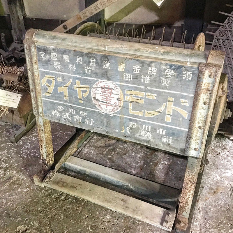 隣の公園に移築された古民家の土間に昔の百姓の道具が陳列されてる中に、いくちゃんが愛知県のものを発見!さゆりさんと僕は愛知県で生まれ宮城で出会ったのだ。しかも同い年!ここには何度も来てるのに気がつかなかった。