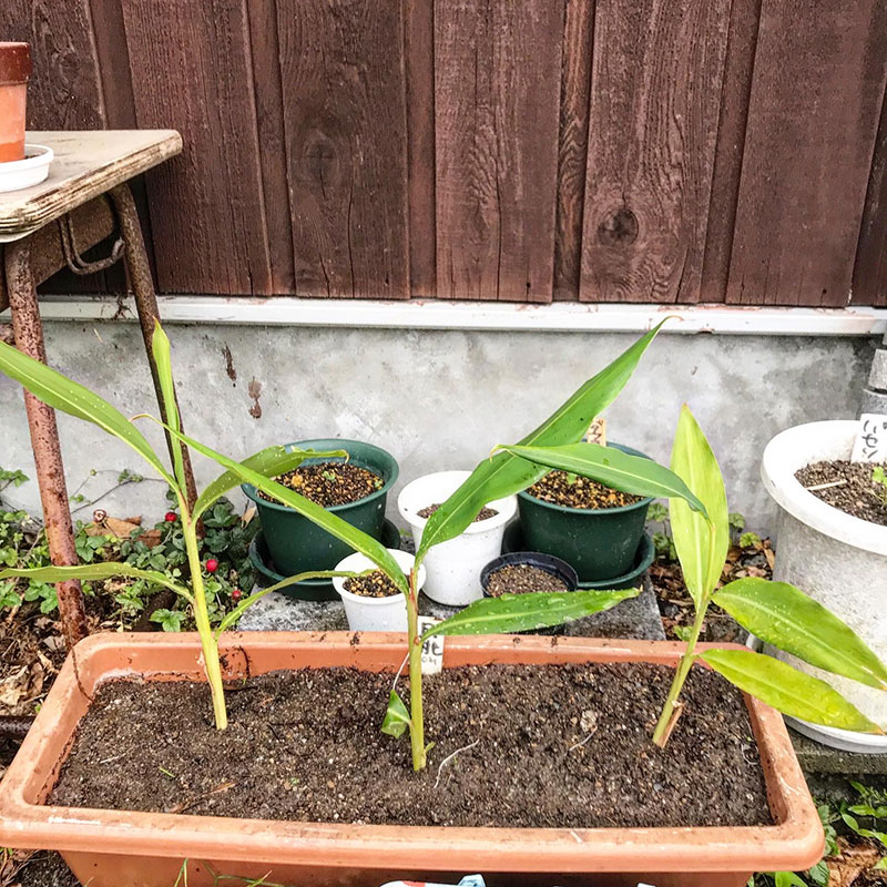 沖縄の名護から送ってもらって大事に育てて増やしてきた月桃。2人とも欲しかったと言うのでプレゼント。これで万が一うちのがダメになっても株分けしてもらえるので安心(笑)ホーリーバジルの苗も。
