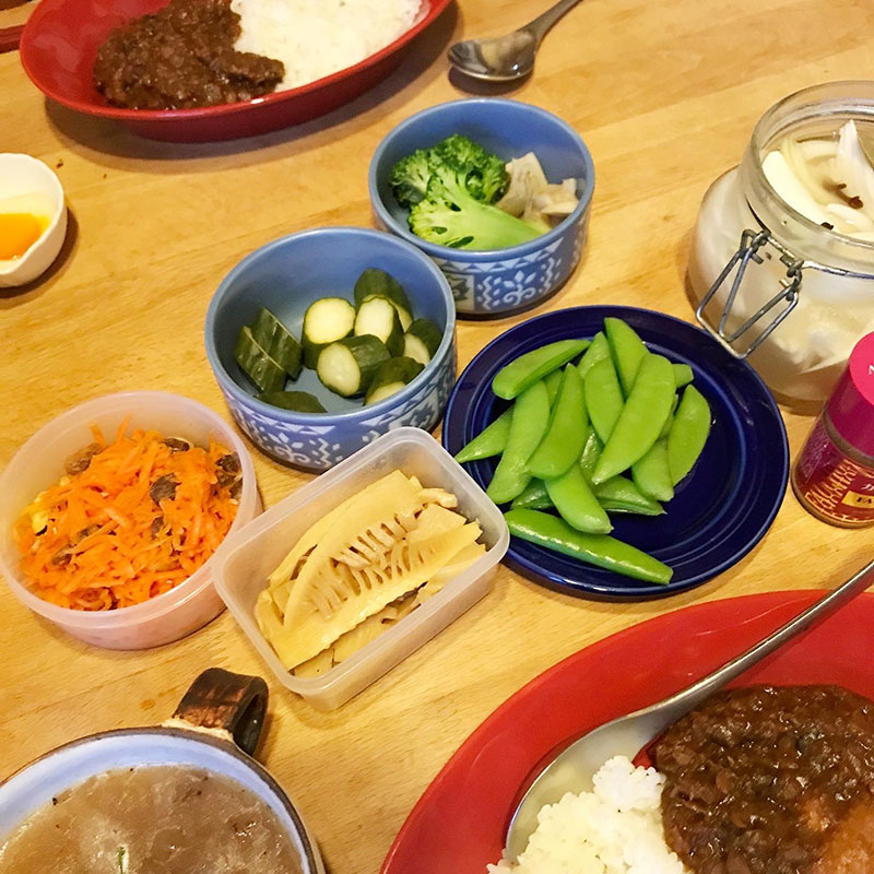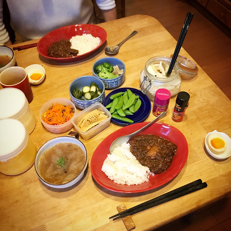 もうひとりの友だちはスパニッシュオムレツとドライフルーツやナッツの入ったにんじんのラペ作ってきてくれた。美味しい。僕は小さな玉ねぎのスープをイタリアンパセリ散らして食べてもらった。