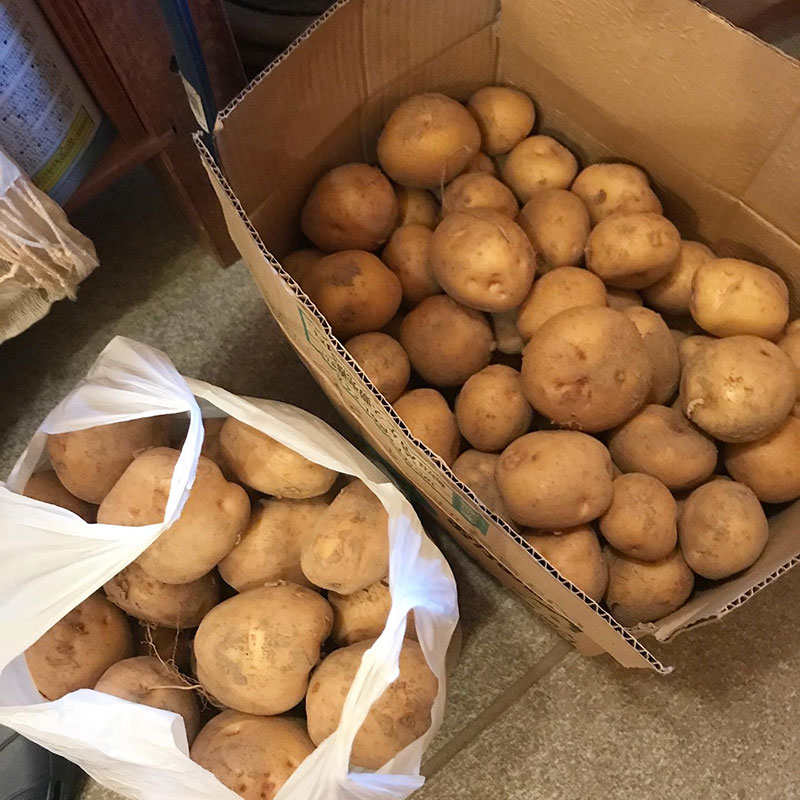 昨晩、近所の方に掘ったばかりのじゃがいもをいただいたので、