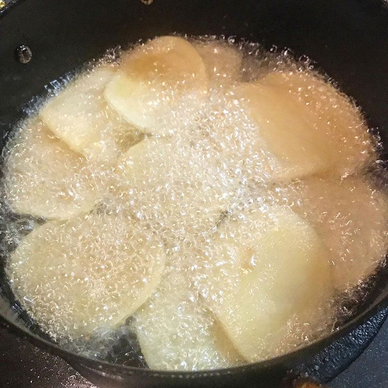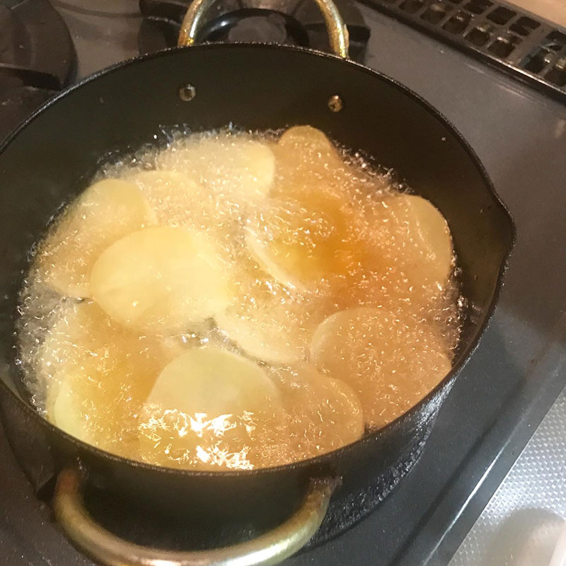 水分たっぷりの新じゃがは揚げるまでの時間と水が抜けるまでの時間がちょうど良くて
