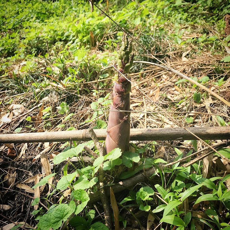 石彫り前の朝仕事。家の周りの土手の破竹を全部倒す。倒しても倒しても出てくる。