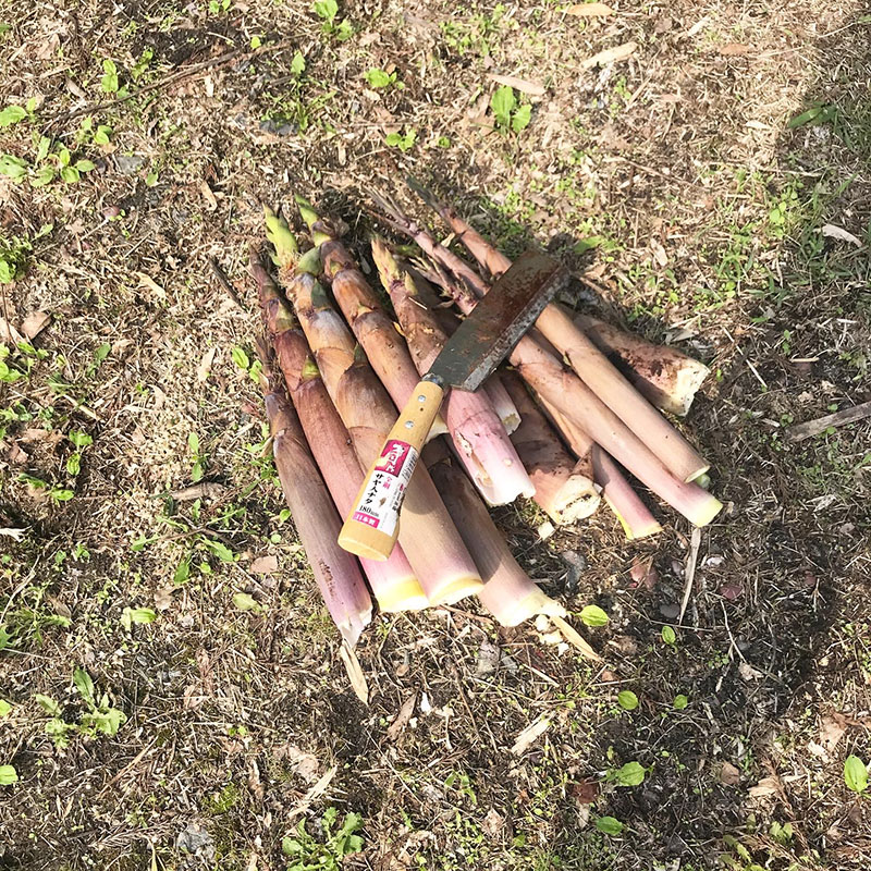 石彫り行く途中、破竹を近所の方に届けていこう。