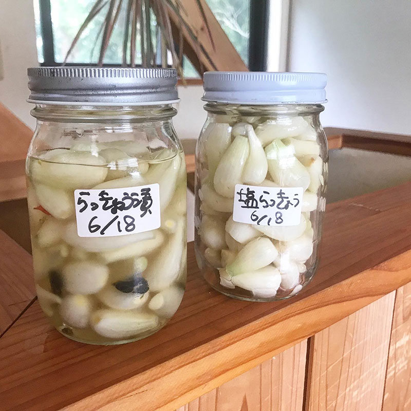 半分塩抜きしてすし酢に漬けてらっきょう漬けにする。採れたてのいろんな野菜をたくさんいただくのでダメにしないようにといろんな漬け物を覚えたな。ありがたいことです。ごちそうさまでした。