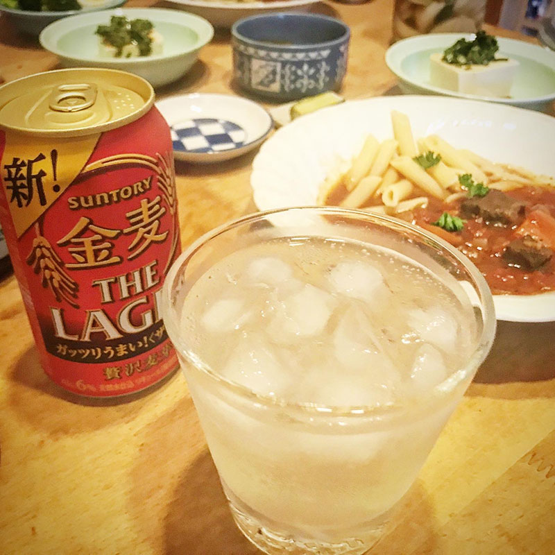 今日は暑かった。モヒートで乾杯。暑かった日のモヒート旨い。そしていつもの赤い金麦。
