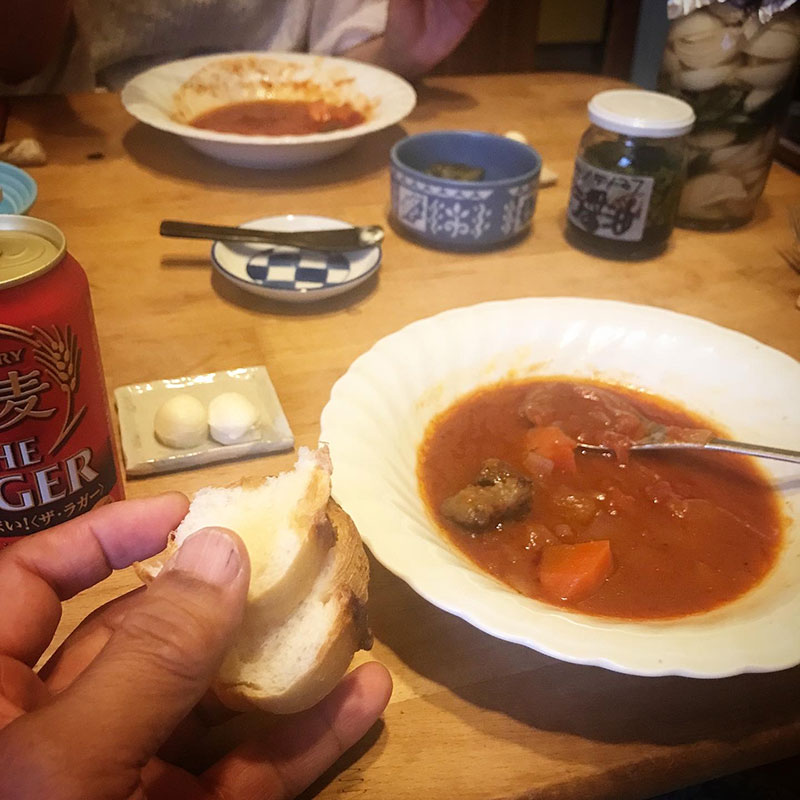 牛スネ肉のトマト煮が美味し過ぎておかわり。2杯目はバゲットとモッツァレッラチーズで。うまー。ごちそうさまでした。