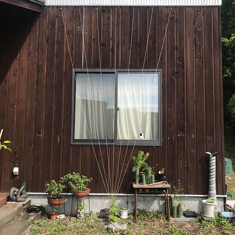 場所を変え、ネットを麻紐に変えて今年もやるよ、ゴーヤで作る緑のカーテン。