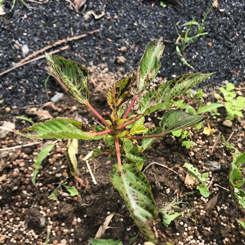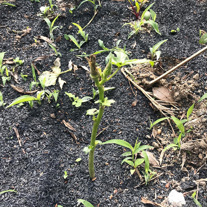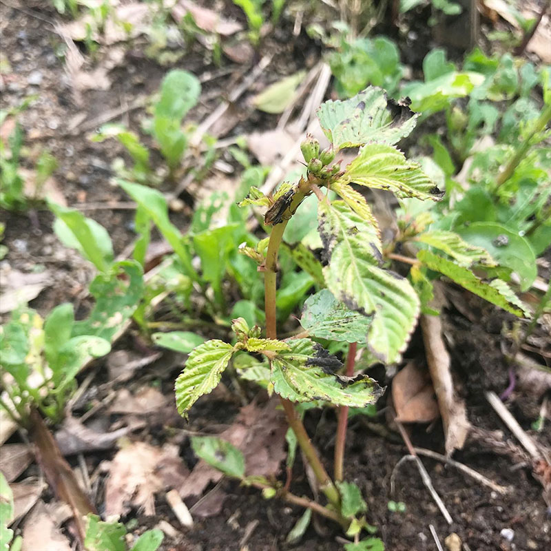 ずっと雨で陽もささず葉がカビて黒くなってしまったモロヘイヤ。