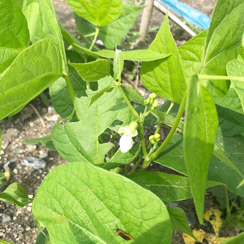 インゲン豆の最初の花が咲いた。