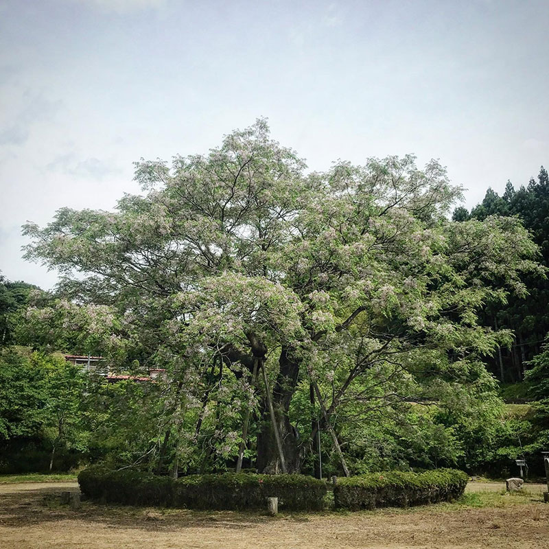 栴檀の巨樹の満開の花を