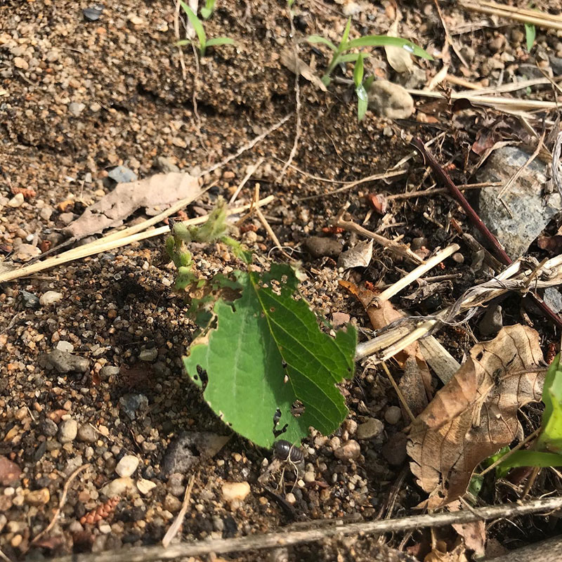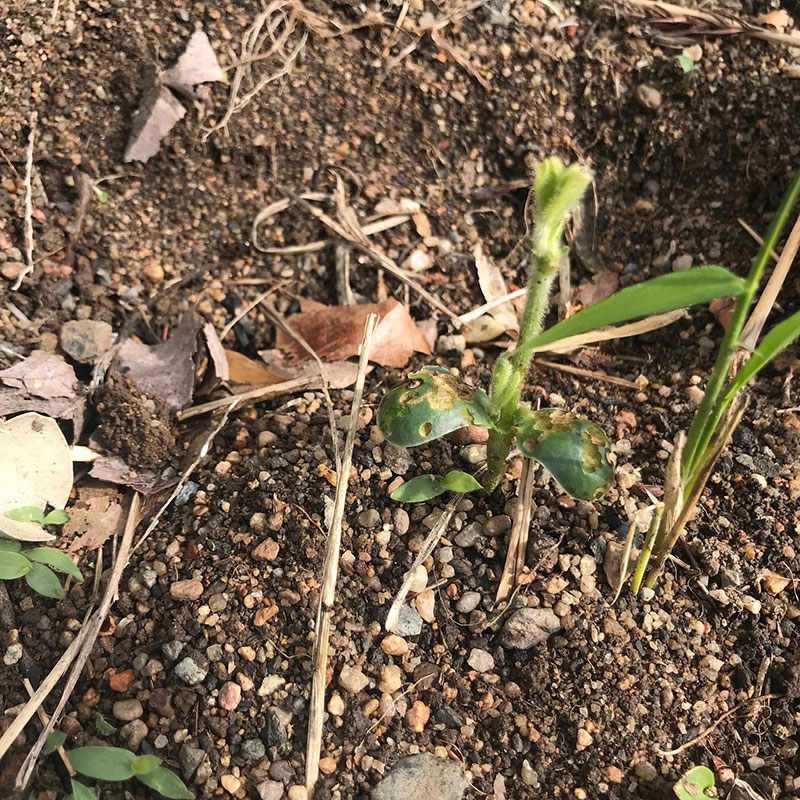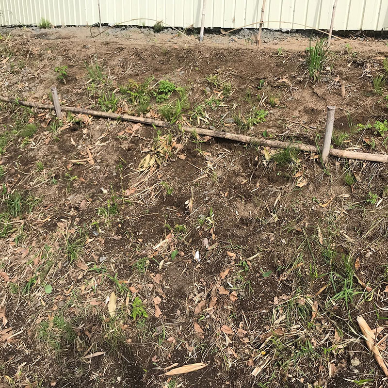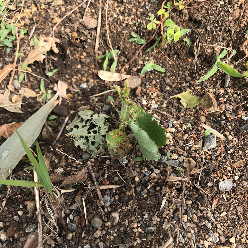 ポットで発芽させて家の土手に移植した枝豆がぼぼ全滅。