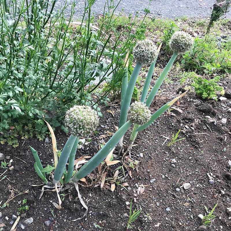長ネギの自家採種。種を取ろうと食べずに畑に残しておいた長ネギを抜いて