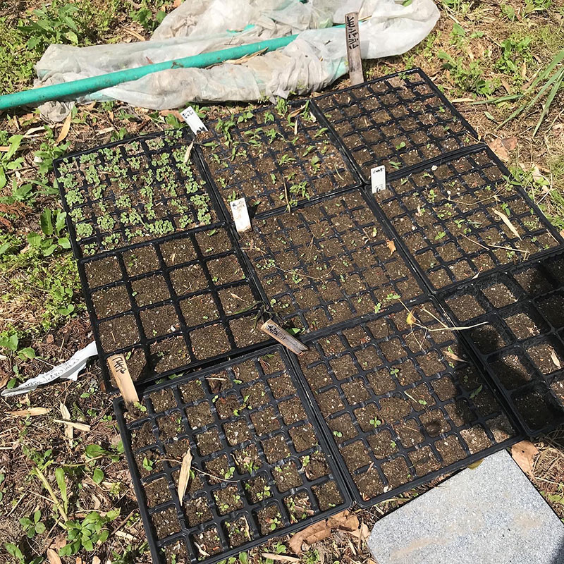 連結ポットにまいてじょうろで水やりしてるものは10日たっても未だに発芽しないのに。(写真左下の連結ポット)ちょっとした事でこれだけ違うから植物を育てるのは難しくて面白い。