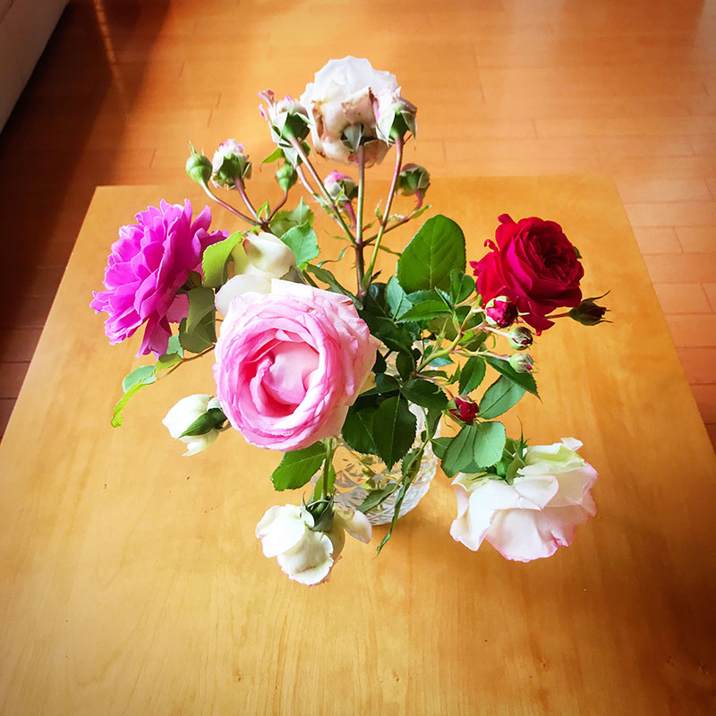 カミさんがもらった薔薇。部屋に薔薇があるといつもの空間が一気に華やか。