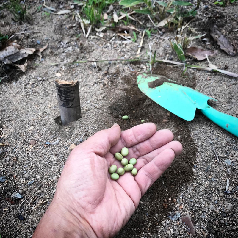 6月になったので去年、自家採種した秘伝豆をまいた。