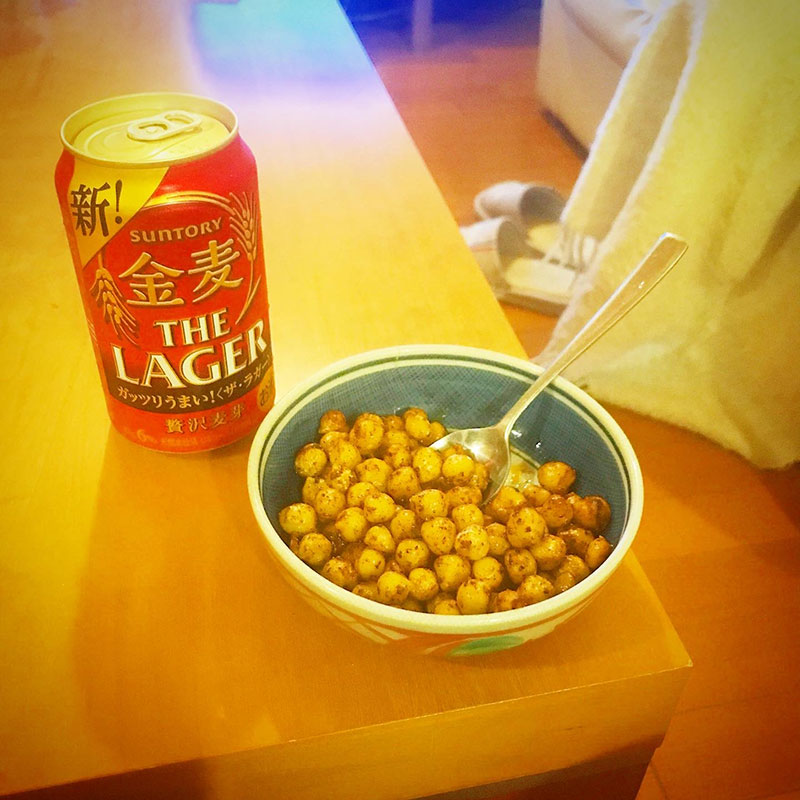 今宵の一品にとひよこ豆を下茹でしてたのを忘れてて食べ終わってから気がついてパプリカ炒めにしてつまみながら金麦。