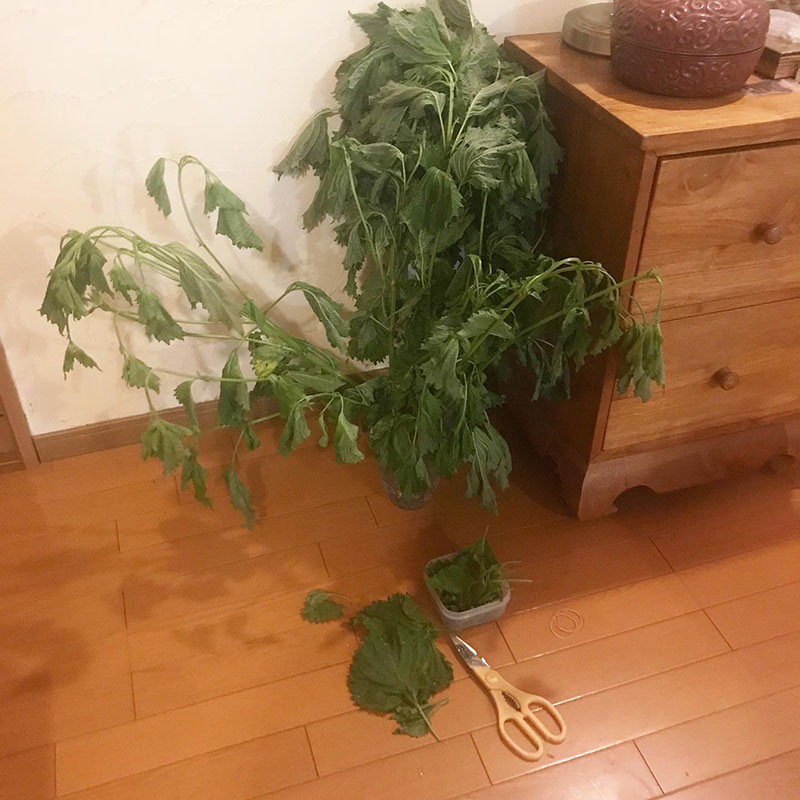 午後の仕事に出かけようとしたら軽トラがやってきて「茄子の邪魔になる大葉倒したからもらってけねぇか(くれないか)?」なんて立派な。