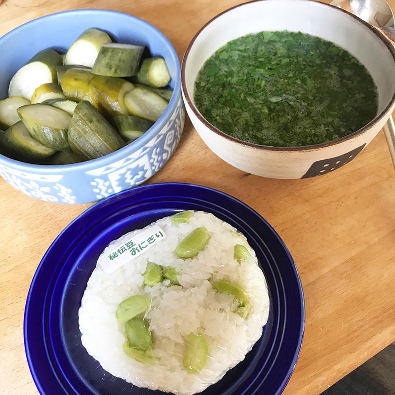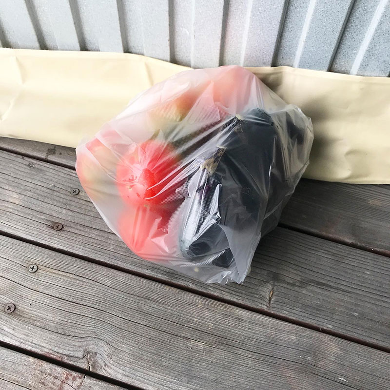 朝、玄関先にトマトと茄子。ありがとうございます。先日、妹家族とFaceTimeした時、東京は野菜が高くて大変、と言ってたから