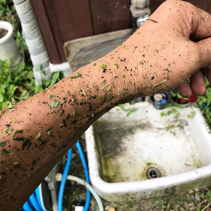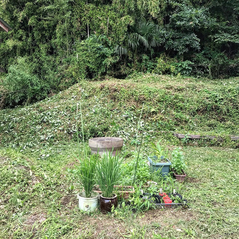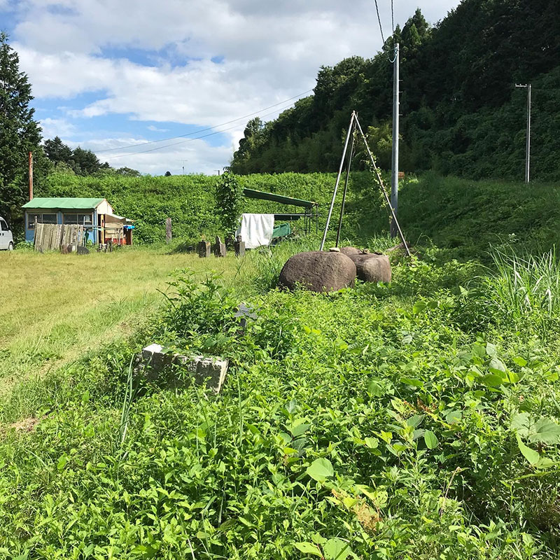 制作日和だから石彫りたかったけどグッと我慢して家の周囲と庭の草刈り、土砂上げ、草抜きした。