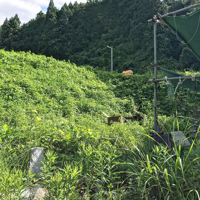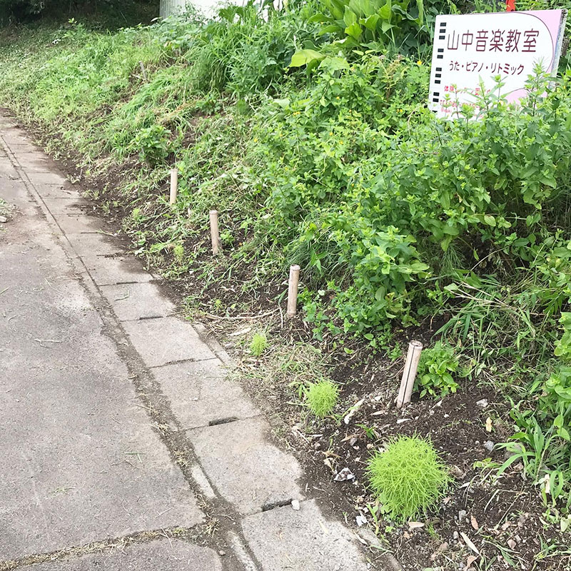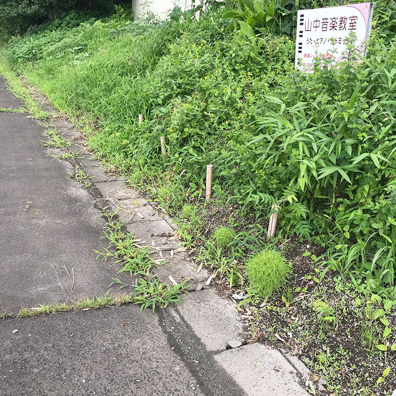 この土方作業地味にかなり辛い。さらに隣接する道路や歩道の草も削ってほうきで掃いて。