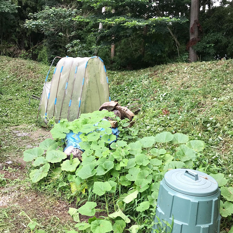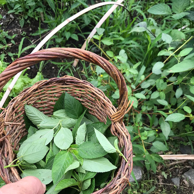 暑くなって急に大きくなったモロヘイヤを初収穫。