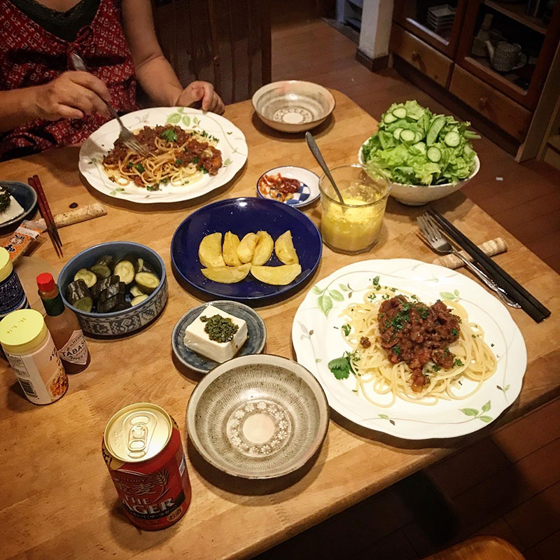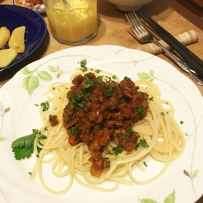 夕方、急に涼しくなったのでミートソース作った。