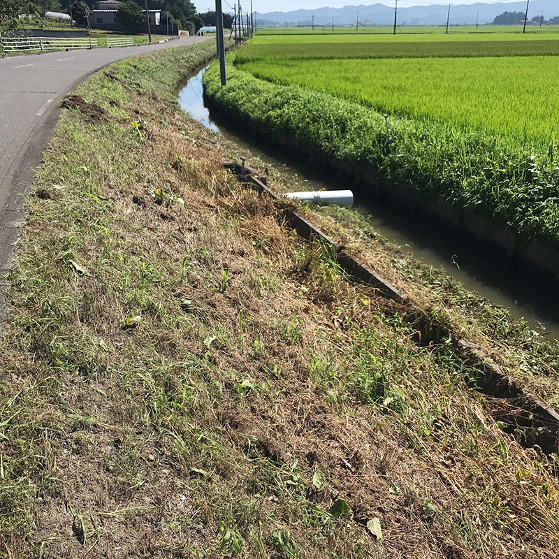 急な法面誰も水路に落ちずに無事終了。