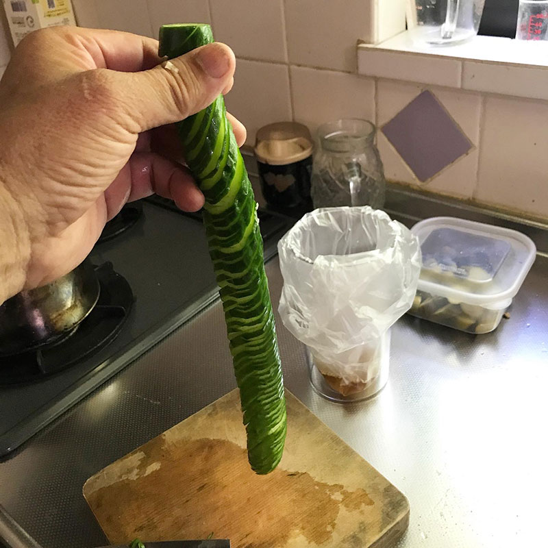 蛇腹に切って酢漬けにする。