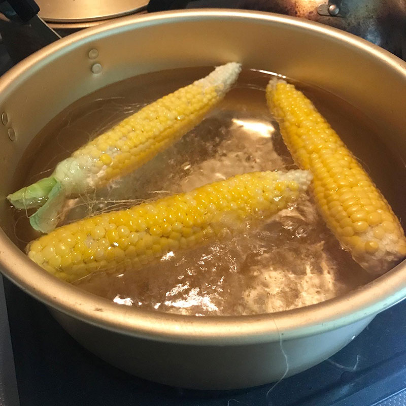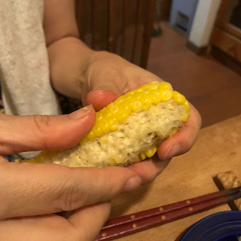 採ってすぐ茹でたとうもろこしの美味しさたるや。とうもろこしと枝豆こそ自分で畑で作って鍋にお湯沸かしてから収穫すべし・笑