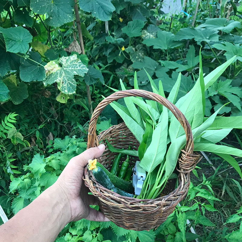 畑で採ってきた初物の