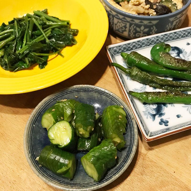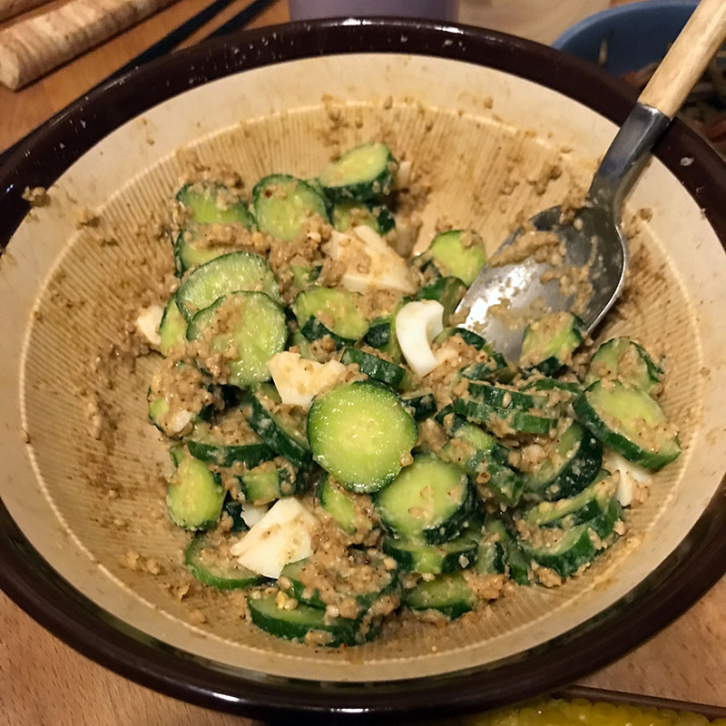 きゅうりは辰巳芳子さんのレシピで胡麻和えに。
