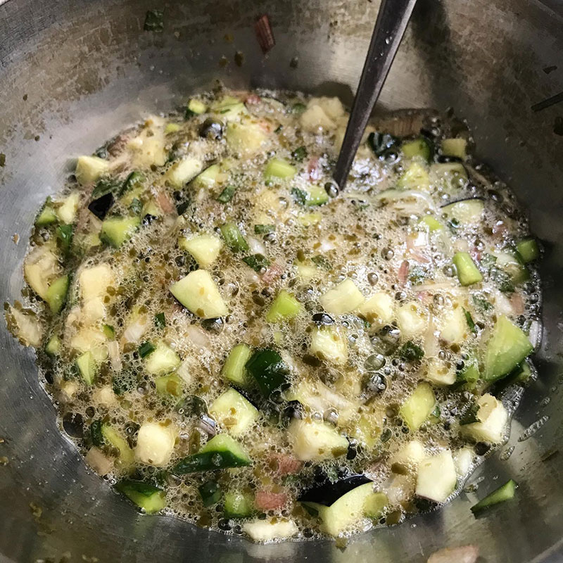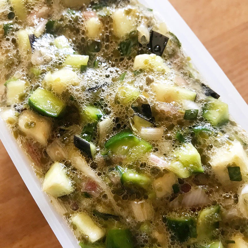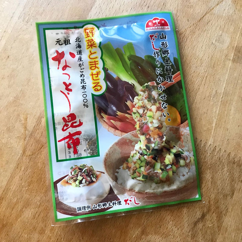 先日、山形へ行った時に買ってきた、がごめ昆布で昼に山形のだしを仕込んだ。