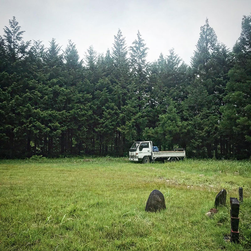 仕事場の杉林の日陰に生えてたグリーンを