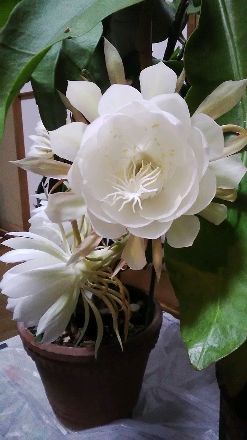 母親から月下美人が咲いたとメール。今晩、食べるって・笑 いや、まじだよ。2011年にお盆に帰省したときにちょうど咲いて夕飯に酢の物でいただいた。