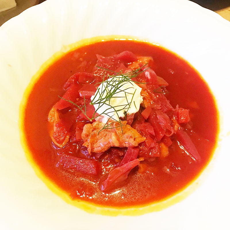 昨晩仕込んだボルシチ。サワークリームとディルは必須。そのためにビーツだけじゃ無くてディルも育ててる。