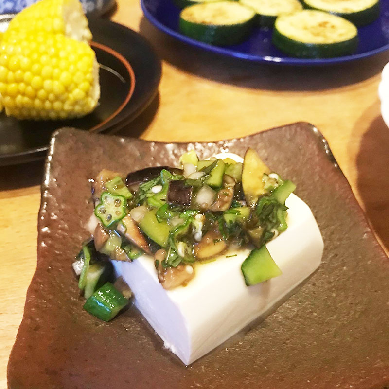 オリーブオイルと塩で仕込んだ山形のだしで冷奴。