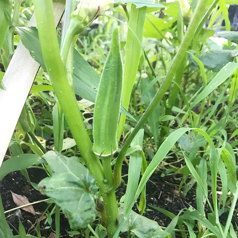 今年はいつまでも小さいままだったオクラがやっと収穫始まった。