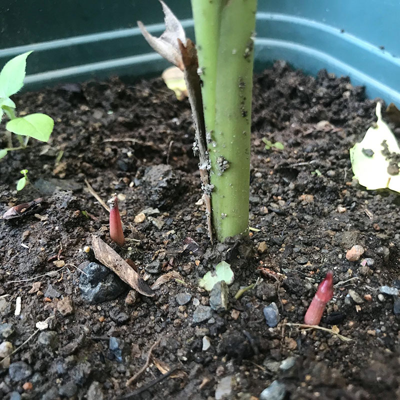 鉢が小さくなってしまってプランターに株分けして移植したら元気が無くて心配してたけど芽がいくつも出てた・嬉!!!