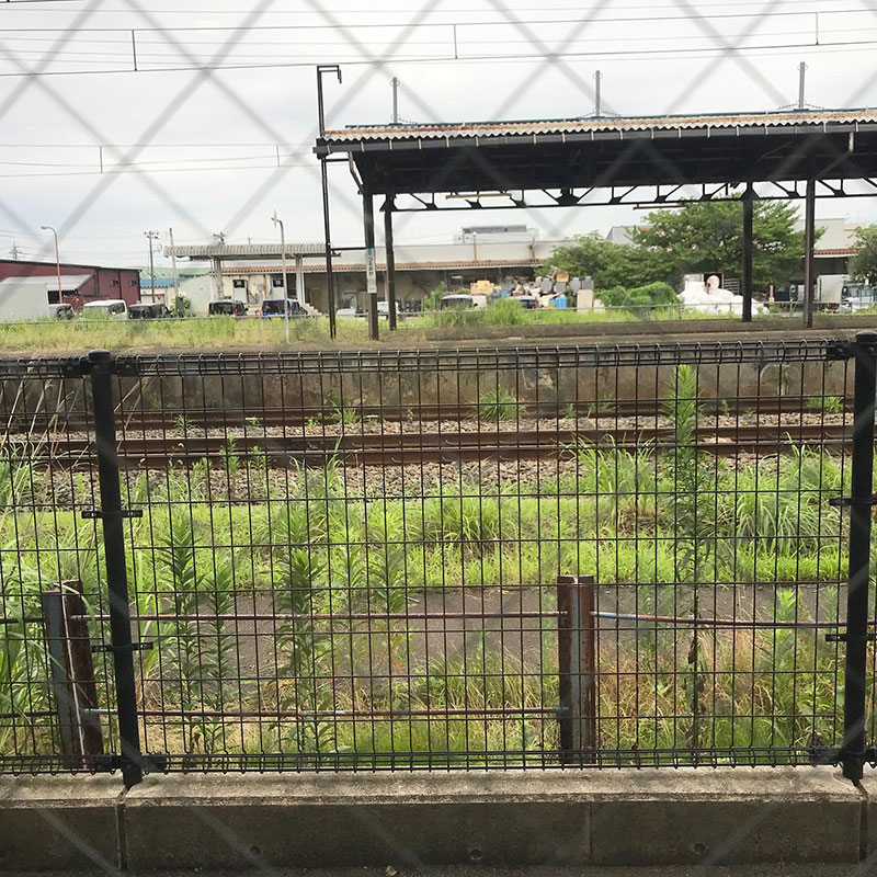 鶴岡駅のホーム見ながらベーグルの朝食。