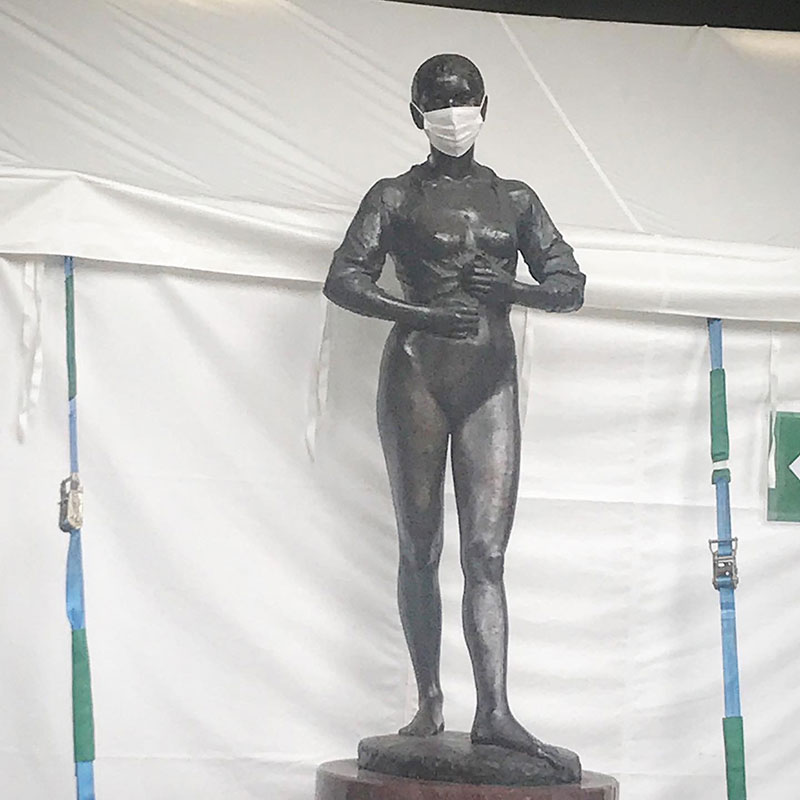 この国の人たちのワクチン信奉、マスク信奉についていけない。屋外でひとりで他人から離れて歩いてる人でもほとんどマスクしてる。それ何の意味があるの?ワクチン打ったせいで何人死んだの?佐藤忠良のヌードのブロンズ像がこんな事になっていた。何これ。マスクをしようという啓蒙のつもり?それともギャグ?もし自分の彫刻にこんな事されたら悲しさと怒りに襲われるだろう。吐き気がした。冒涜。